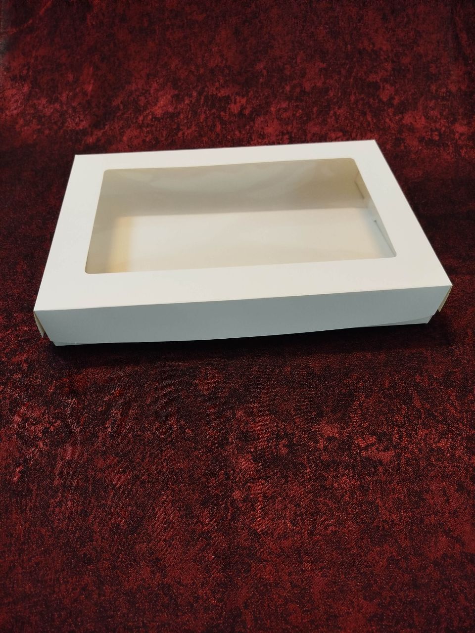 دستهبندی: جعبه سفید با درب طلقدارسایز و ارتفاع: ۲۰ در ۳۰ با ارتفاع ۴/۵جنس مقوا: مقوا ایندربرد با روکش سلفون